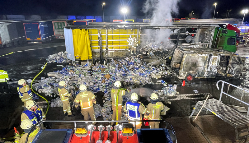 „Aufgrund der winterlichen Temperaturen und eingefrorener Wasserstellen war die Löschwasserversorgung über den neben der A 2 liegenden Hohnhorstweg eine besondere Aufgabe“, berichtet Stadtfeuerwehrsprecher Benjamin Rüger. „Der Unterflurhydrant war zu gefroren, Wasser auf dem Boden gefror sofort und wurde zu einer Eisfläche.“ Der Transporter und der direkt daneben befindliche Sattelauflieger inklusive Zugmaschine wurden durch die Flammen fast komplett zerstört oder erlitten durch das Feuer hohen Schaden. Durch das schnelle Eingreifen wurde jedoch verhindert, dass der dritte Sattelzug ebenfalls den Flammen zum Opfer fiel.