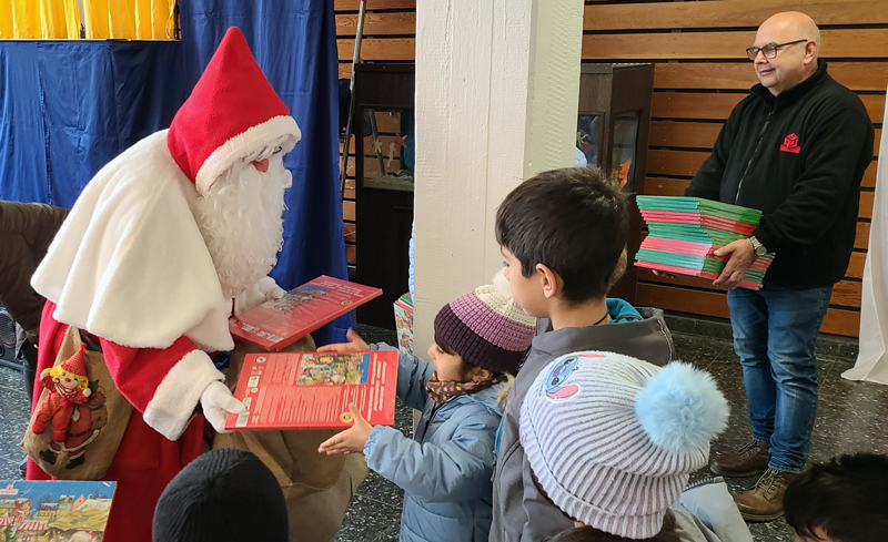 Der Weihnachtsmann verteilt Geschenke an die Kinder und wird dabei von Zoran Stipic (re.) unterstützt – Foto: DGB Lehrte