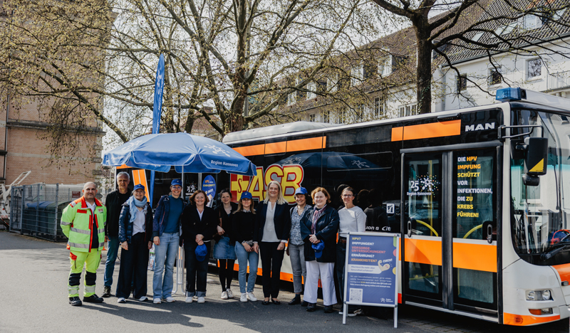 Dafür rollt mit Unterstützung des Arbeiter-Samariter-Bundes Hannover, der das Fahrzeug und den Fahrer stellt, ab dem 21. April 2026 der „HPV-Infobus“ durch die Region, der Fragen rund um das Thema HPV und Krebsvorsorge durch Impfung beantwortet.