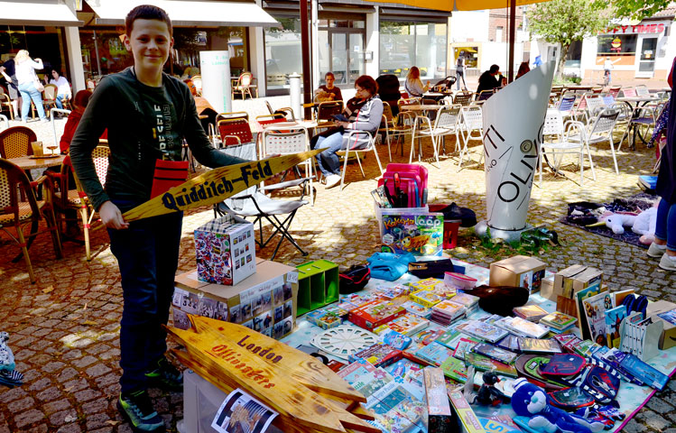 Der Wettergott muss Sehnder sein, so kann man den Nachmittag des Flohmarktes ab 14 Uhr kurz umreißen. War am Morgen noch Schauertätigkeit, stellte sich am Nachmittag trockenes warmes Wetter ein und sorgte damit für einen guten Besuch des Marktes – Eis essen bei Sonnenschein inklusive. „Wir hatten zwar nur 13 Anmeldungen im Voraus“, sagte Jens Reimann, Organisator der CDU, „doch dann sind es mehr als 30 junge Anbieter geworden.“ Die durften ab 14 Uhr aufbauen, aber da kamen auch schon die ersten Schnäppchenjäger. Verkaufen durfte jeder – vom Kita-Alter bis zur Mittelstufe der KGS.