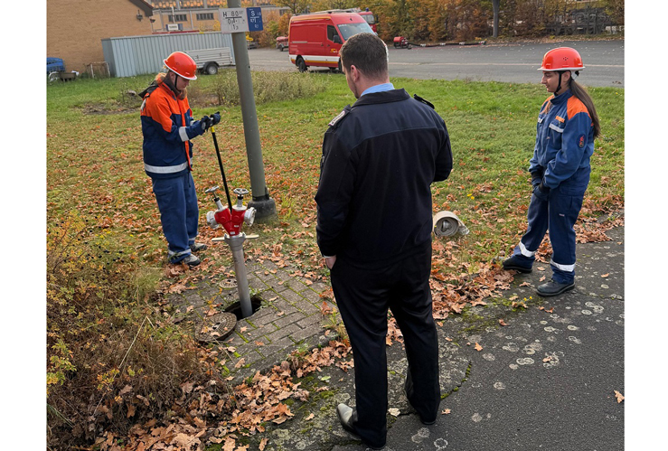 Ursprünglich waren drei Teilnehmerinnen für die Abnahme gemeldet, die im Vorfeld mit der Stadtjugendfeuerwehr abgesprochen worden war. Eine Jugendliche musste jedoch kurzfristig absagen, sodass Lina und Leandra als Duo antraten – und ihre Qualitäten unter Beweis stellten.