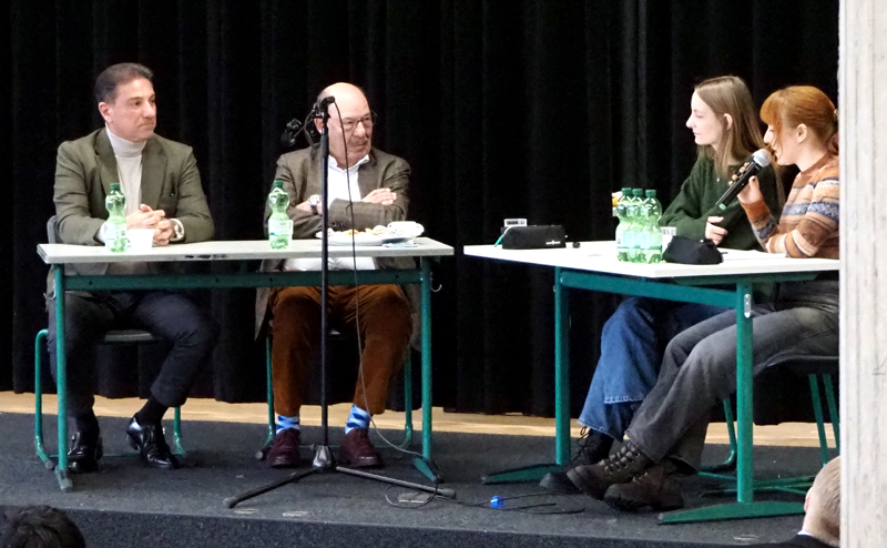 So wollten sie Schüler gerne wissen, wie die beiden doch unterschiedlichen Männer sich verstanden haben und Freunde geworden sind und wie die Freundschaft hält. „Dazu“, so Dr. Shammout, „ist gegenseitiger Respekt erforderlich. Aber Freundschaft muss unterschiedliche Meinungen aushalten können.“ Fürst ergänzte: „Zuhören bedeutet nicht gleich Zustimmung oder die gleiche Meinung zu haben.“ Und so wurde durch die Moderatorinnen in dem eineinhalbstündigen Gespräch immer mehr klar, wie man Toleranz und Verständnis trotz unterschiedlicher Auffassungen und Lebensmodellen leben kann und sich dabei vertraut. Alle Fragen wurden ausführlich von den beiden Besuchern beantwortet, wobei Trennendes und Verbindendes nicht verschwiegen und gut herausgearbeitet wurde. Aber auch, dass es nie einen Zweifel gab, dass Freundschaft nicht nur aus gleichen Ansichten bestehen muss, sondern auch die Belastung von unterschiedlichen Meinungen und Ansichten aushält und aushalten muss. Denn nur so ist friedliches Zusammenleben möglich und machbar. „Der Kriegsbeginn am 7.10.2023 hat in beiden Gemeinden etwas bewegt“, sagte Fürst. „Nun müssen wir wieder zueinander finden. Als Projekt haben wir die gemeinsame Arbeit für die ukrainischen Flüchtlinge entdeckt.“